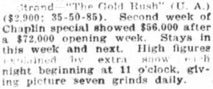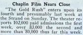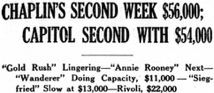 Editorial content. „Chaplin‘s Second Week $56,000;