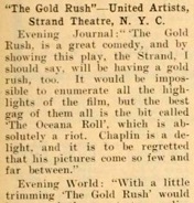 & „The Gold Rush“ – United Artists, Strand Theatre, N. Y. C.