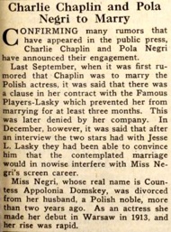 (...) Her engagement to Charles Chaplin kept Miss Negri‘s name