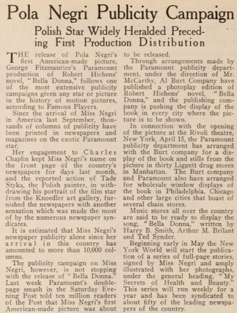 „Would in nowise interfere with Miss Negri‘s screen career“