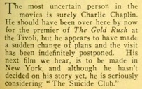for the premier of The Gold Rush at the Tivoli, but he appears