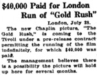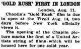 „In Britain ,The Gold Rush‘ opened at the Tivoli, Strand,