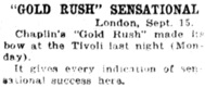 Chaplin‘s Gold Rush made its bow at the Tivoli