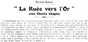La Ruée vers l‘or opens in Paris September 22, 1925.