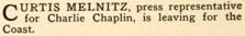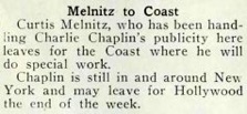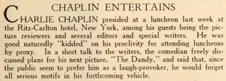 The picture will be ready in about six months, according to present expectations. While Chaplin has been in the East,