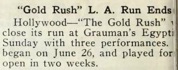 Hollywood – The Gold Rush will close its run at Grauman‘s