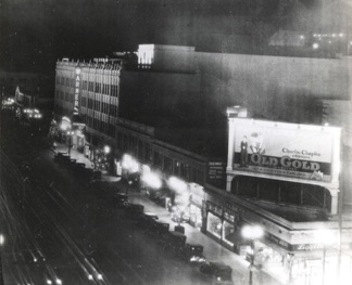 & Night view of illuminated Christmas trees on Hollywood Boulevard, Hollywood 1928, California Historical Society Collection