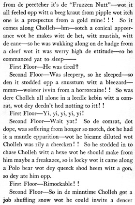 de nuts from a sung wot dey was sinking in de Dence Hall