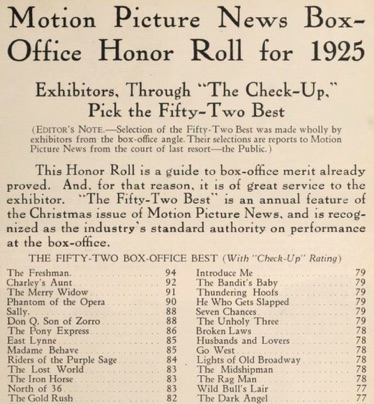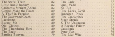 Don Q. Son of Zorro 88, The Pony Express 86, East Lynne 85,