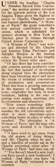 Under the headline ,Chaplin Smashes Sacred Film