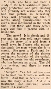 A Woman of Paris, Says Critic