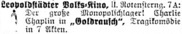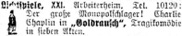 Schönbrunnerstr. 175: Charlie Chaplin in dem Monopolschlager Goldrausch, Tragikomödie in sieben Akten.