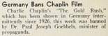 BERLIN, Jan. 8. – Charlie Chaplin‘s „The Gold Rush“