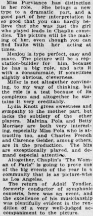 Edwin Schallert, Los Angeles Times, L. A., Cal., Sept. 27, 1923.