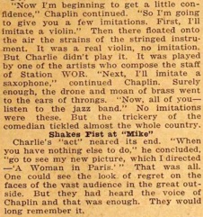 ,Next, I‘ll imitate a saxophone,‘ continued Chaplin. Surely