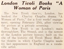 The New Tivoli theatre, London, has booked the Charley Chaplin