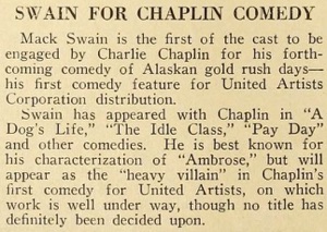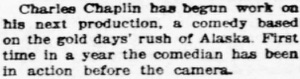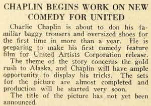 Chaplin for his forthcoming comedy of Alaskan gold rush