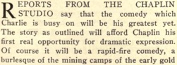 Editorial content. „REPORTS FROM THE CHAPLIN STUDIO