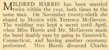 broke into noise (...) And Mildred Harris. Mildred was off again,