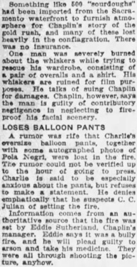 News of the destruction by fire of the Charles Chaplin