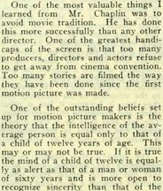 The basis of Chaplin‘s success is sincerity. He is guided