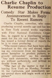 & Charlie Chaplin leaves for coast shortly to resume production.