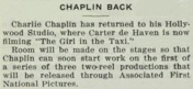 Charlie Chaplin has announced that he will resume