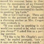 Seated just in front of me was Charlie Chaplin, leaning
