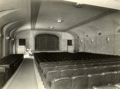 leather covered seats, organ to the left of the stage,