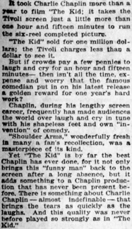 „Yet The Kid is by far the best Chaplin has ever done.“ (...)