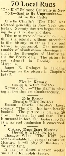 The Kid Released Generally in New York – Said To Be Unprecedented for Six Reeler“ (...)