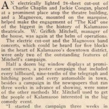 Kalamazoo, Mich., in advance of his showing of „The Kid“