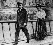 Lenin leaving a Petrograd theater with his sister after a matinee