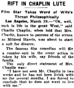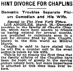 Editorial content. „HINT DIVORCE FOR CHAPLINS