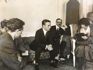 & Charles Chaplin being interviewed at the Ritz Hotel,
