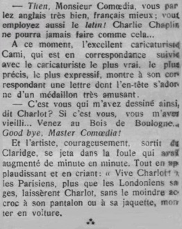 en applaudissant et en criant: ,Vive Charlot!‘ les Parisiens, plus