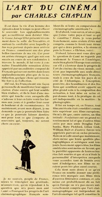 Charles Chaplin, Cinéa, Paris, October 28, 1921
