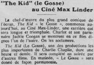 The Kid „le Gosse“, commence aujourd‘hui, au Ciné