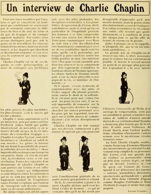 Editorial content. „Un interview de Charles Chaplin.“