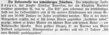 Der sechsjährige Jackie Coogan, der jüngste Filmstar Amerikas,