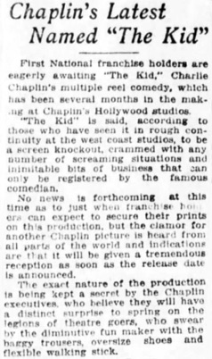 Chaplin‘s big special titled „The Kid“ is now receiving