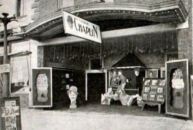 Charlie Chaplin, Willard Theatre, exterior by day, marquee Charlie Chaplin, Creston, Iowa, 1920