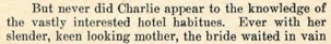 „But never did Charlie appear to the knowledge of the vastly interested hotel habitues. Ever with her slender, keen
