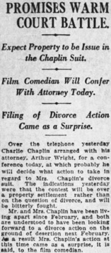 Expect Property to be Issue in the Chaplin Suit.