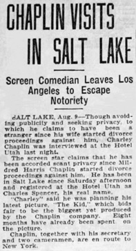 Chaplin was interviewed at the Hotel Utah last night.