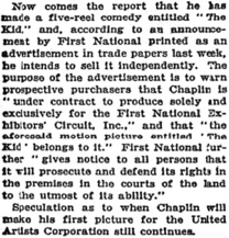 „When Chaplin will make his first picture for the United Artists“