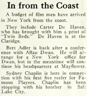 Sydney Chaplin is here in connection with his first