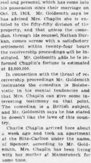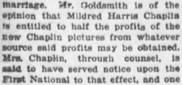 as counsel to Mildred Harris Chaplin, the comedian‘s wife.“ (...)