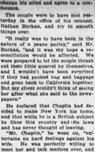 „About the same time Mrs. Chaplin arrived, Charlie