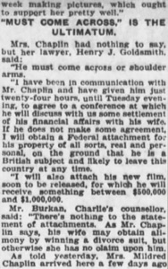 Mrs. Chaplin had nothing to say, but her lawyer, Henry J.